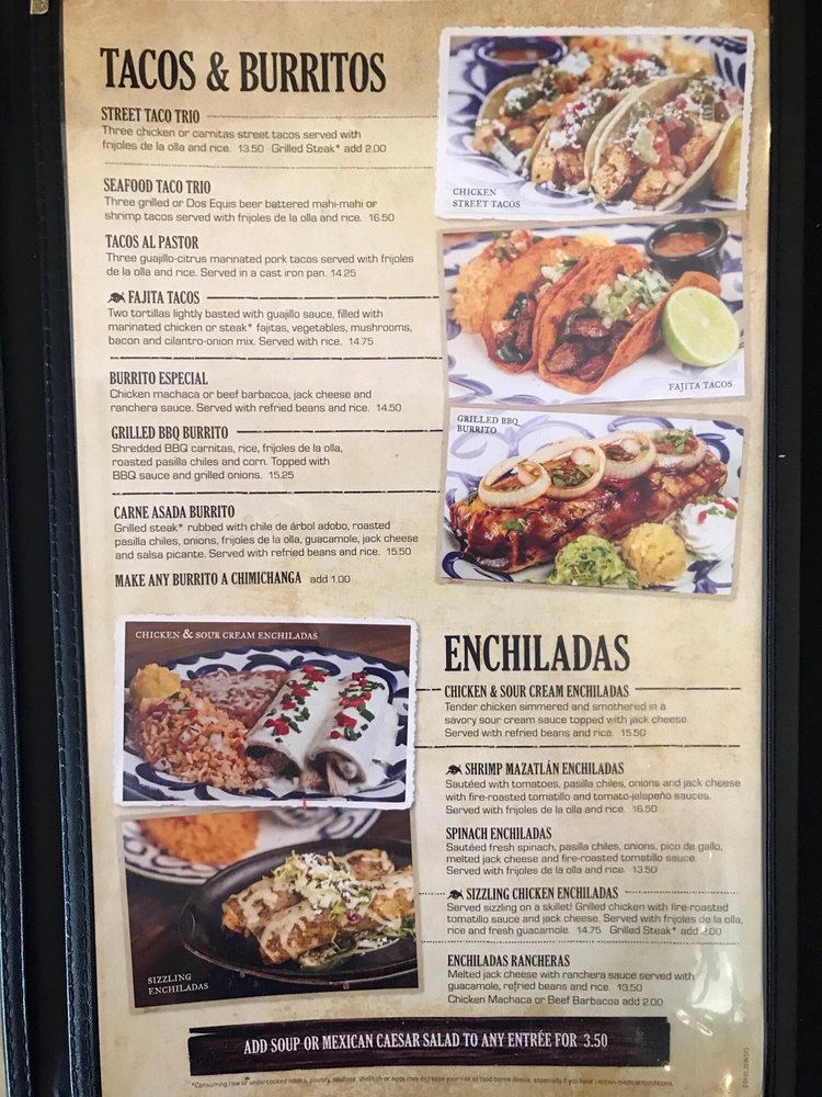 Three grilled or Dos Equis beer battered mahi-mahi or shrimp tacos served with frijoles de la olla and rice.
